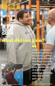 AMAZING work on the 2026 CrossFit Open, CFD!! We saw incredible effort from everyone the past 3 weeks — we know it isn't easy to push yourselves to that next gear, but now you know it's possible! What will your goal be for the next 12 months? Did the Open expose a weakness? Maybe it's pacing, cardio capacity, wall ball volume, pull-ups, or the ever-present muscle ups. Don't forget about the movements we didn't see this year, too. (Cough cough, wall walks.) What I love most about the Open is watching our community support each other. I love seeing people