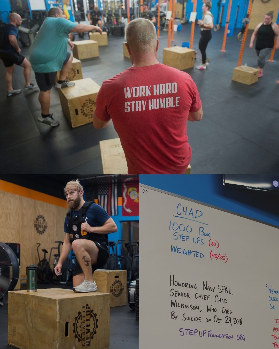 This coming week, we have our hero WOD “Chad” coming up — during all classes on Tuesday, Nov. 11, we’ll be completing the workout “Chad,” which is 1,000 weighted box step ups for time. Modifications will be offered for all! Please join us for this inspiring, community-building grind.