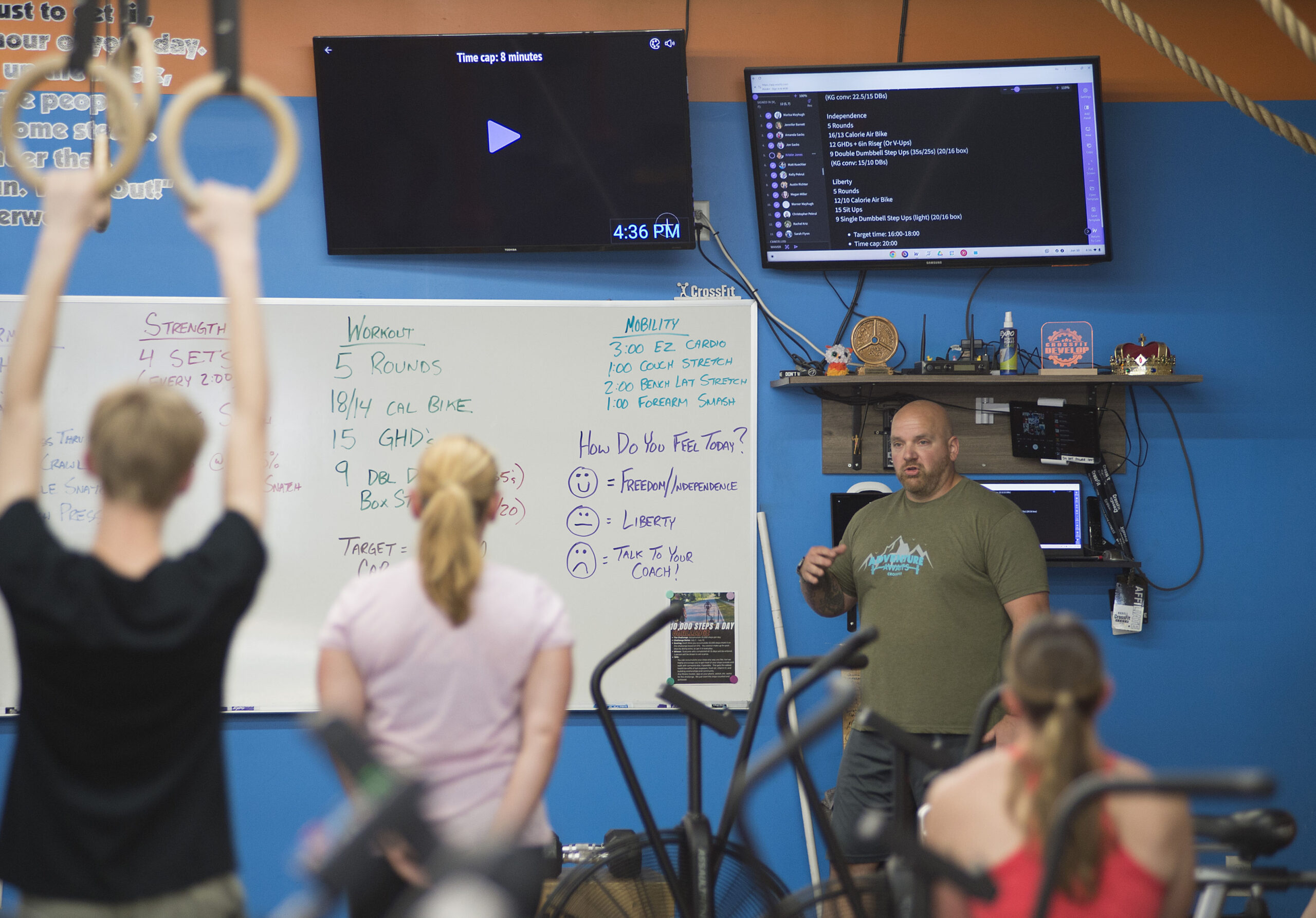 “At the start of class, the coach uses the whiteboard to set clear expectations and goals, explaining the workout and providing scaling options so every athlete can participate at their appropriate intensity.